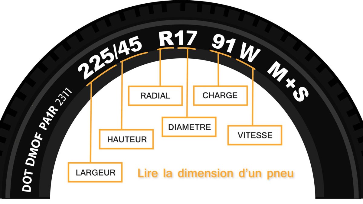 Vous pouvez également trouver cette dimension sur le flanc de vos pneus. Il se présente sous la forme d'une marque composée de chiffres et de lettres. Par exemple, si vous trouvez une marque : 225/55 R 17 97 W, le pneu nécessite une jante de 17 pouces.